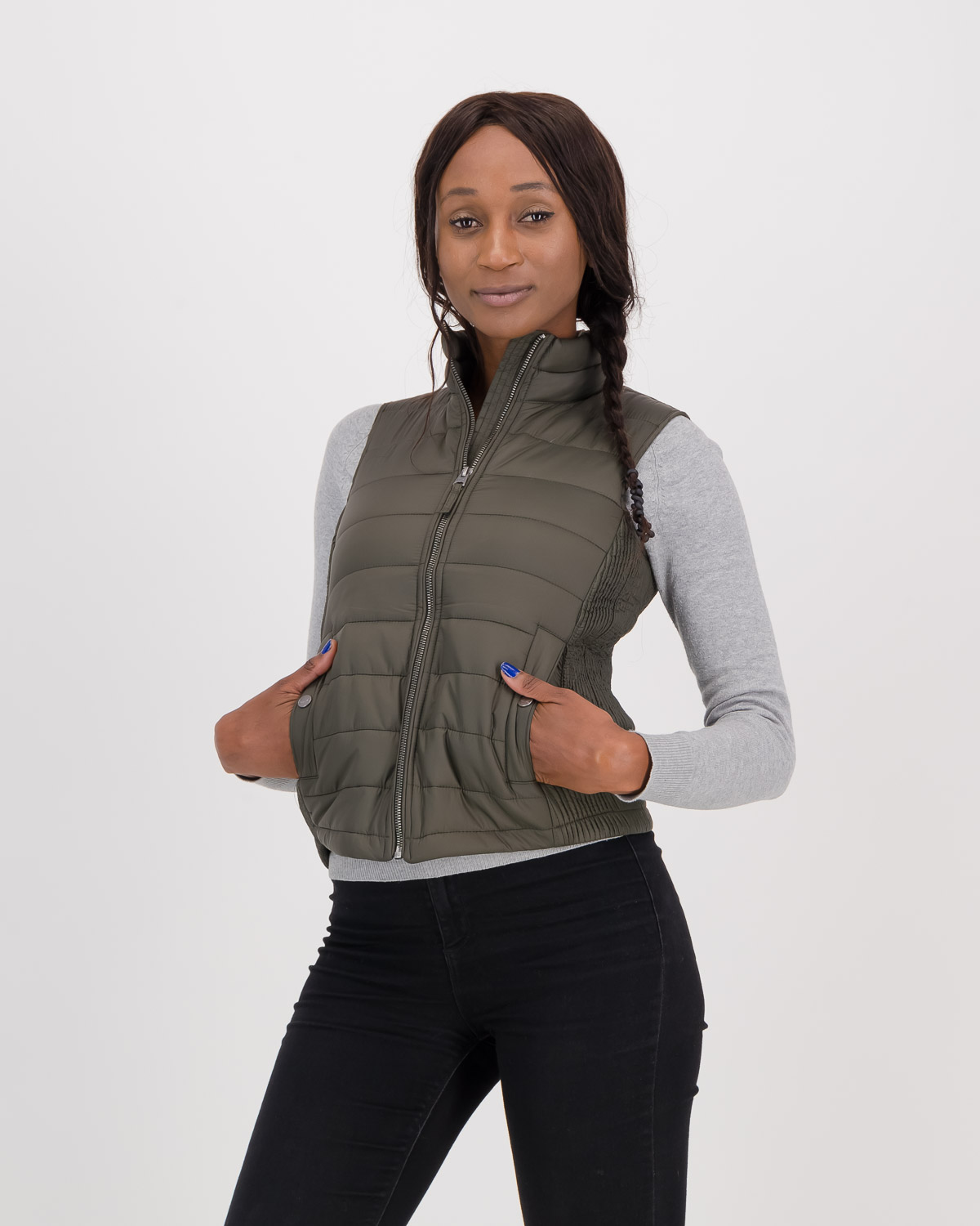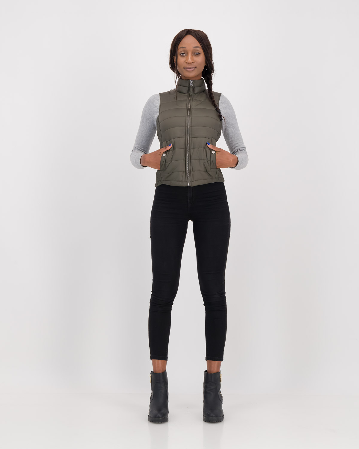 Ladies Tonal Sleeveless Puffer – Wild Olive Green (ONLY SMALL, XL & XXL LEFT)