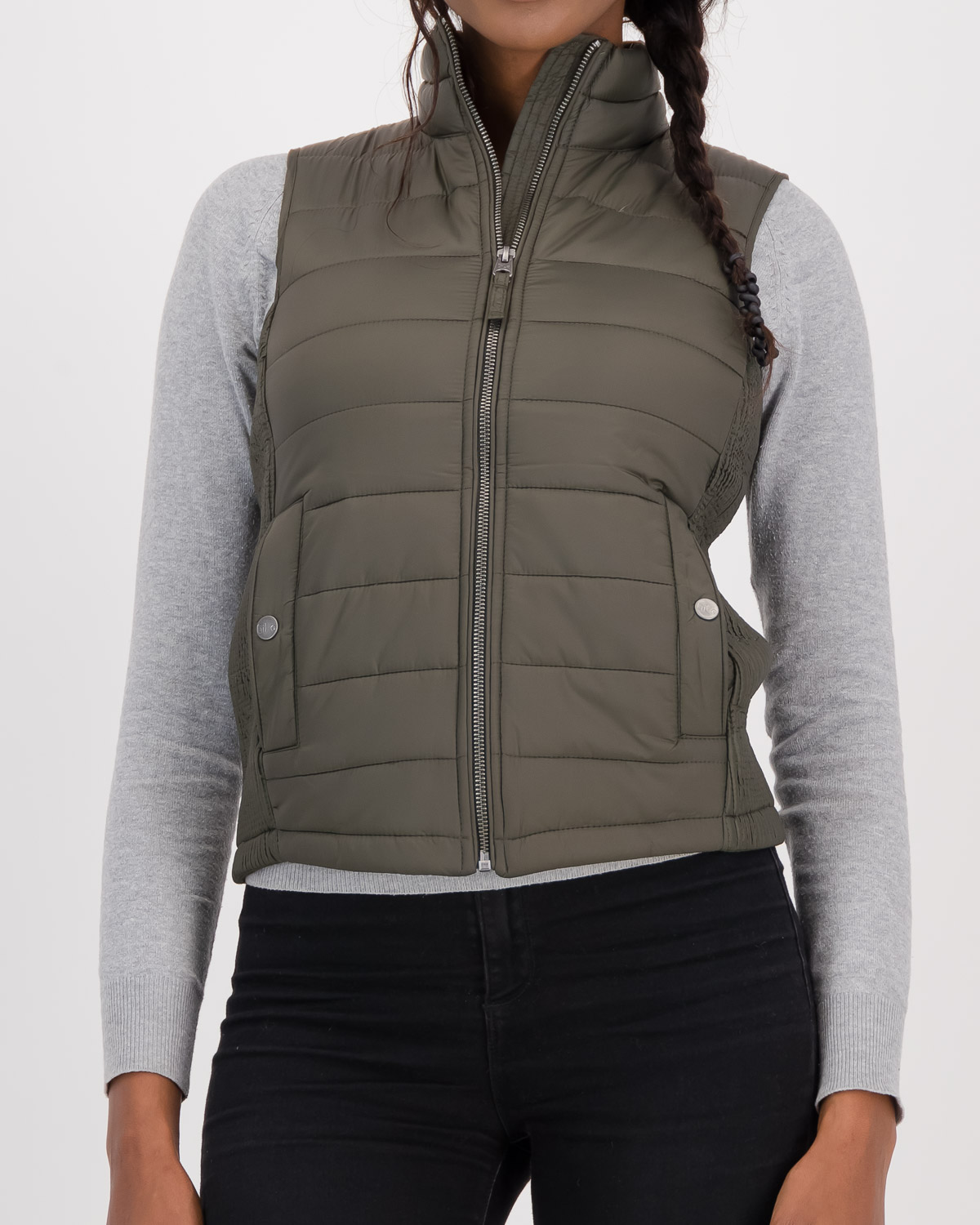 Ladies Tonal Sleeveless Puffer - Wild Olive Green (ONLY SMALL, XL & XXL LEFT)
