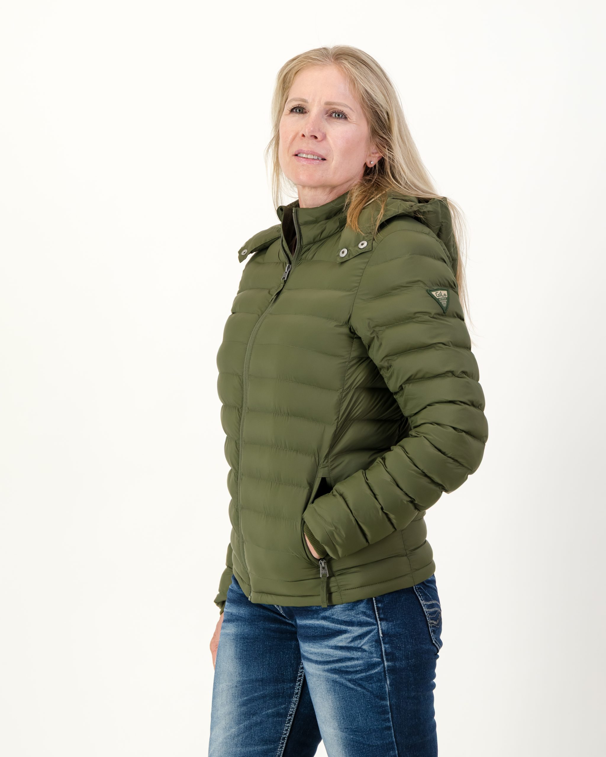 Ladies Long Puffer Jacket With Detachable Faux Fur Hood – Wild Olive Green (Small & XXL left!)